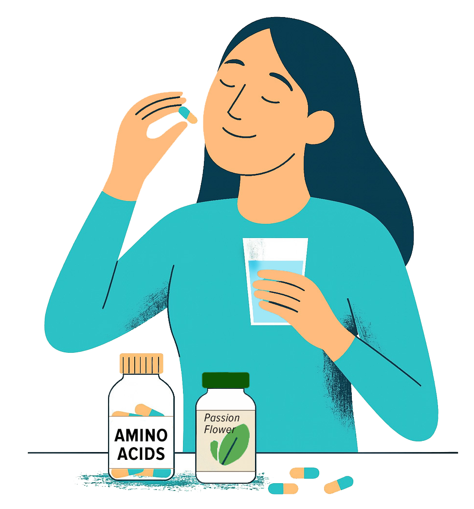 амінокислоти, вітаміни, мінерали. Це ті речовини, які ми щодня повинні отримувати з їжею, але в стресі виникає їх дефіцит. За допомогою добавок ми лише додаємо те, що життєво необхідно для нормальної роботи нервової системи